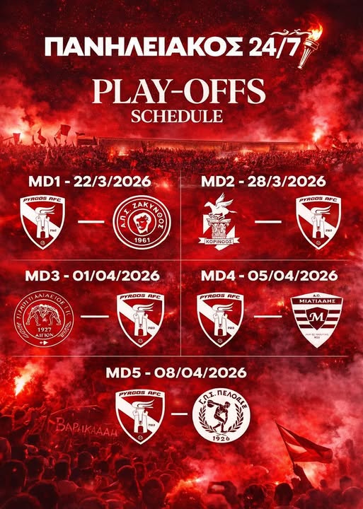 Η κλήρωση των μπαράζ ολοκληρώθηκε και ο Πανηλειακός μπαίνει στην πιο κρίσιμη φάση της χρονιάς. Πέντε παιχνίδια που θα κρίνουν πολλά και θα απαιτήσουν συγκέντρωση, πάθος και στήριξη από όλη την πόλη.