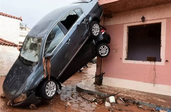 Με το πρώτο φως της ημέρας, η φύση έδειξε την πιο σκληρή της όψη. Ορμητικοί χείμαρροι νερού και λάσπης – όγκοι ολόκληροι που είχαν συσσωρευτεί στο βουνό – εισέβαλαν απότομα στην πόλη, κατεβαίνοντας από το Όρος Πατέρα με ανεξέλεγκτη ταχύτητα και σαρώνοντας τα πάντα στο πέρασμά τους. Δρόμοι μετατράπηκαν σε ποτάμια λάσπης, αυτοκίνητα παρασύρθηκαν σαν καριδοτσουφλα, σπίτια και καταστήματα πλημμύρισαν σε λίγα δευτερόλεπτα.
