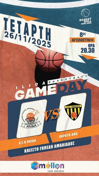 Τετάρτη 26/11, στις 20:30, στο Κλειστό Γυμναστήριο Ήλιδας.