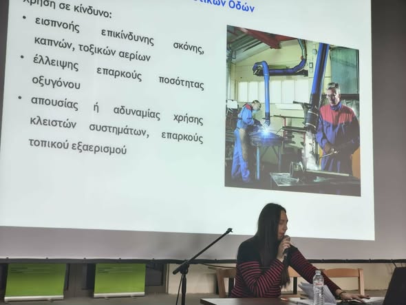 Κύρια ομιλήτρια της ημερίδας ήταν η τεχνικός ασφαλείας, κ. Ζαχαροπούλου Ελένη, η οποία ανέλυσε διεξοδικά τα εξής: