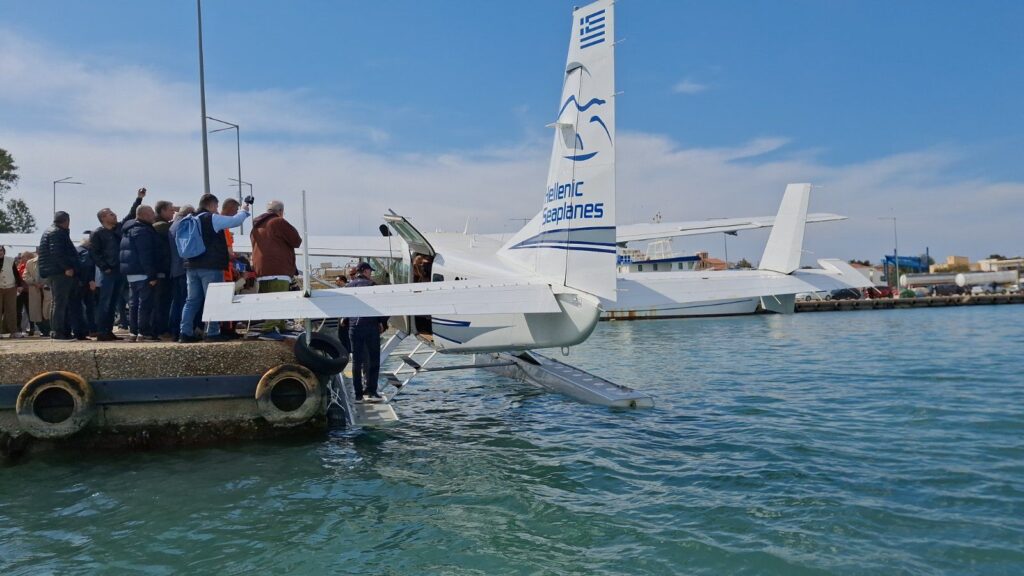 Επιβαίνοντες ήταν οι Βουλευτές Ηλείας Ανδρέας Νικολακόπουλος και Διονυσία Αυγερινοπούλου, καθώς και ο Διευθυντής Επίγειων Επιχειρήσεων της Hellenic Seaplanes Πολυχρόνης Ροντογιάννης.
