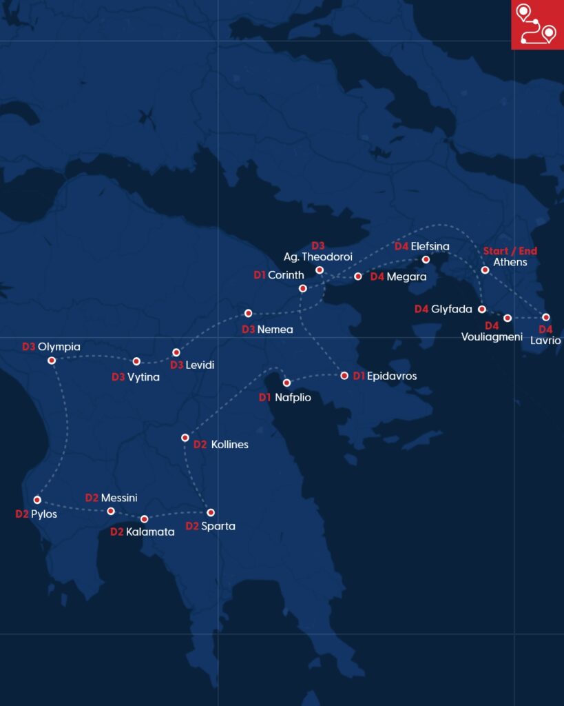 • 8 Οκτωβρίου (Leg 1): Αθήνα → Ναύπλιο