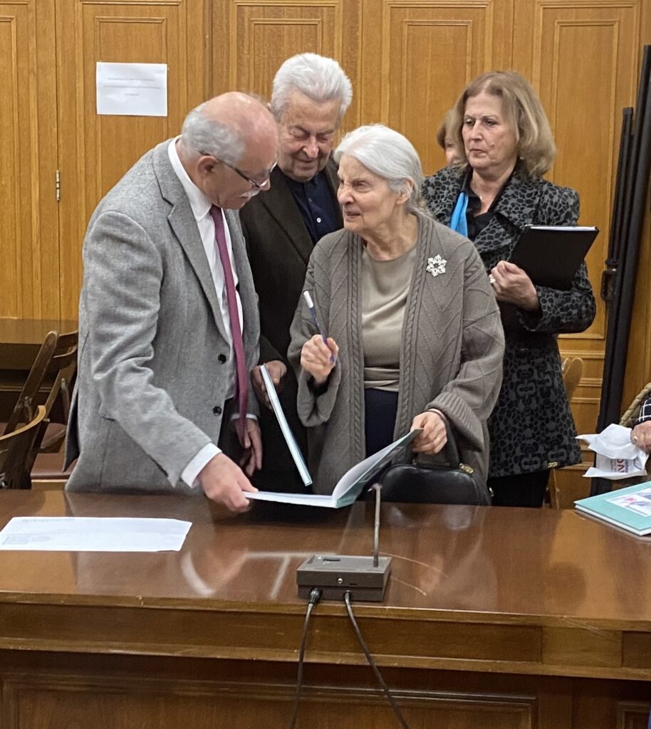 Για το βιβλίο μίλησαν με γλαφυρό τρόπο και μέσα σε κλίμα συγκίνησης και νοσταλγίας οι Γιολάντα Αποστολοπούλου, Πρόεδρος του Συνδέσμου Φιλολόγων, Κατερίνα Παρασκευοπούλου, Πρόεδρος του Λυκείου Ελληνίδων και Καρολίνα Κολιοπούλου, η εικονογράφος του βιβλίου και κόρη της συγγραφέως, οι οποίες μετέφεραν το κοινό στον Πύργο του χθες, εκεί όπου η συγγραφέας έζησε τα παιδικά της χρόνια.
