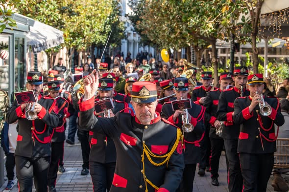 Στο μουσικό πνεύμα των Χριστουγέννων και της Πρωτοχρονιάς μύησε τους κατοίκους του Πύργου η εξαίρετη Φιλαρμονική Λεχαινών «Ορφεύς», παιανίζοντας γιορτινές μελωδίες, την Κυριακή 28 Δεκεμβρίου 2025.