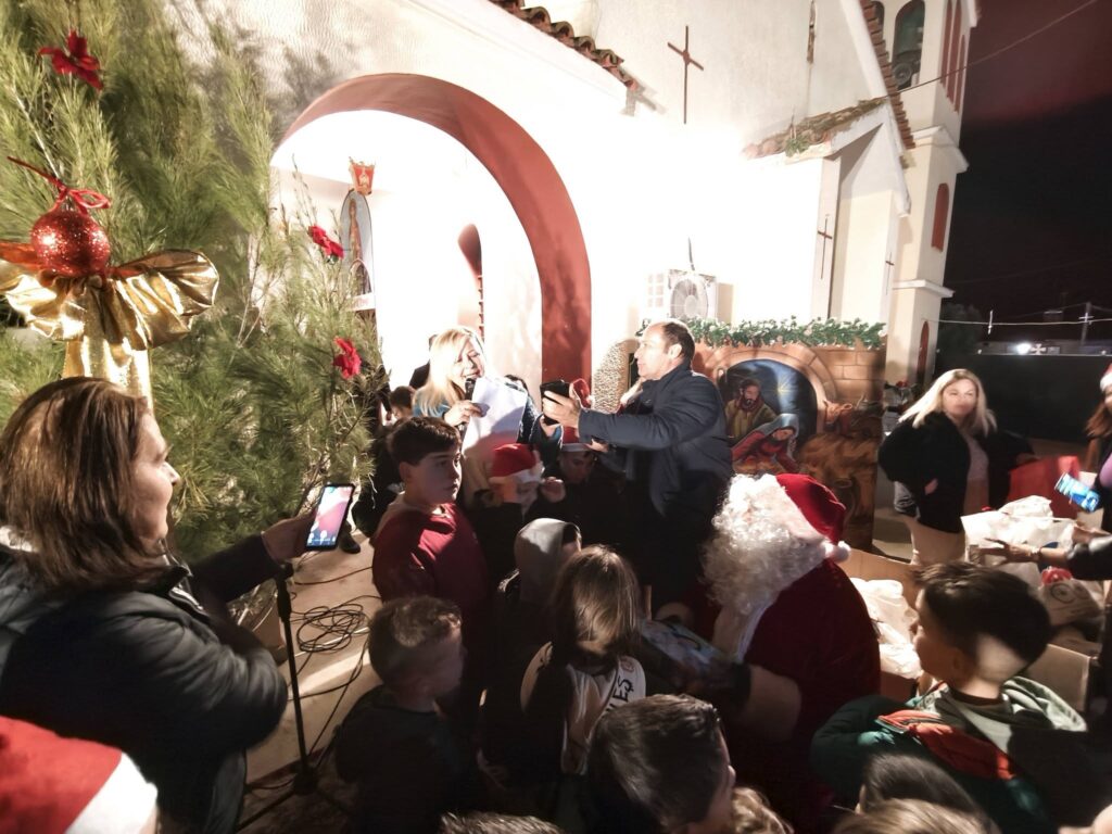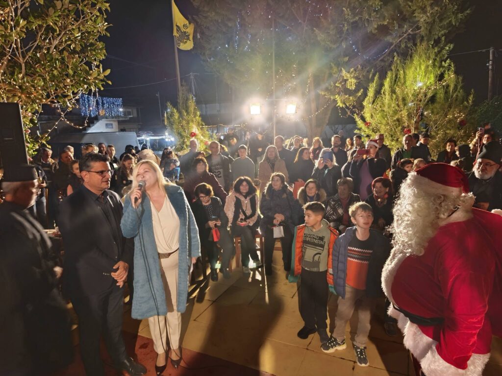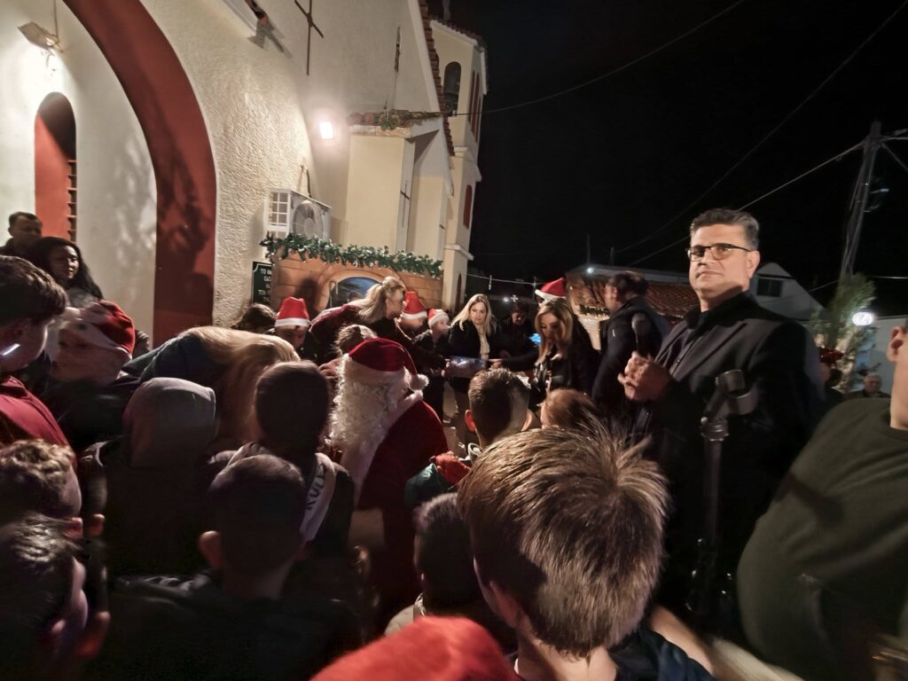 Η στιγμή που απογείωσε τον ενθουσιασμό ήταν η εμφάνιση του Άγιου Βασίλη, ο οποίος κατέφθασε φορτωμένος με δώρα, μοιράζοντας χαρά και εκπλήξεις σε όλα τα παιδιά. Παράλληλα, η πλατεία μοσχομύρισε από τα πλούσια κεράσματα που ετοίμασαν με μεράκι οι γυναίκες της Κοινότητας. Τα παραδοσιακά γλυκίσματα και τα σπιτικά εδέσματα πρόσφεραν μια γεύση αυθεντικής φιλοξενίας, κάνοντας κάθε επισκέπτη να νιώσει τη θαλπωρή των ημερών.