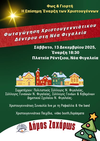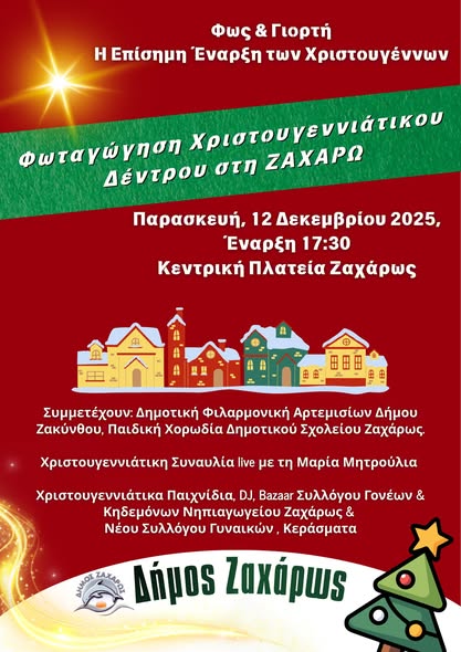 Ο Δήμος Ζαχάρως προσκαλεί όλους τους δημότες και επισκέπτες να συμμετάσχουν στις εκδηλώσεις και να μοιραστούν τη χαρά και τη μαγεία των Χριστουγέννων.