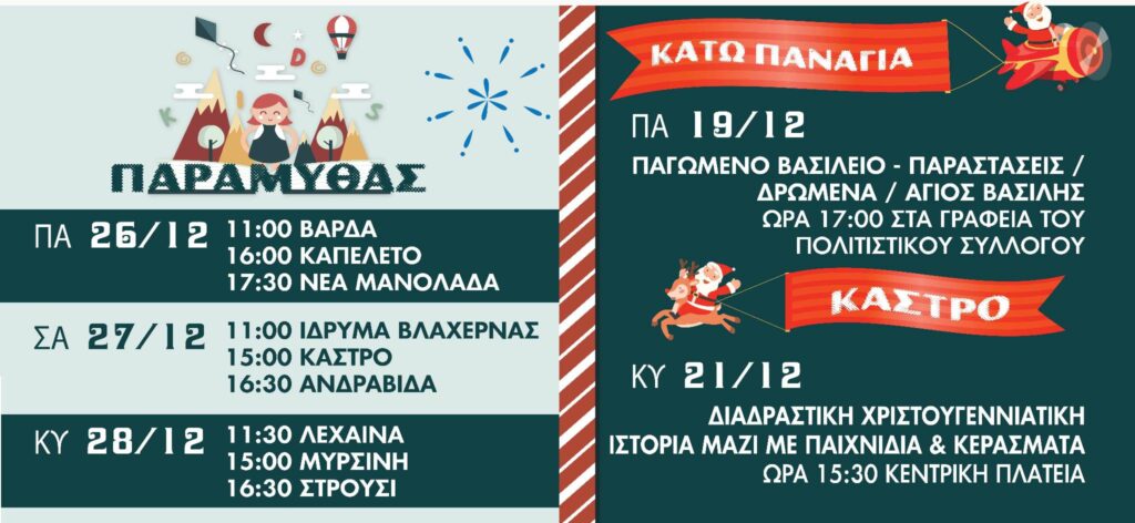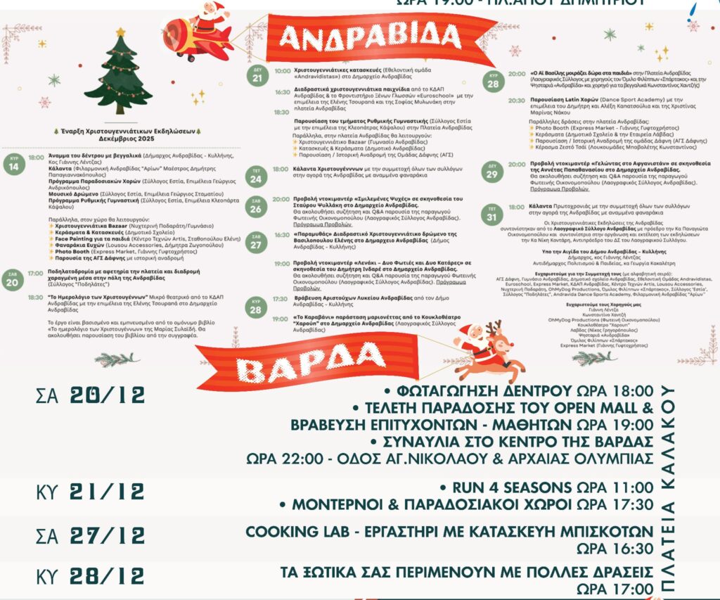 ΕΟΡΤΑΣΤΙΚΟ ΠΡΟΓΡΑΜΜΑ ΧΡΙΣΤΟΥΓΕΝΝΙΑΤΙΚΩΝ ΕΚΔΗΛΩΣΕΩΝ ΔΗΜΟΥ ΑΝΔΡΑΒΙΔΑΣ ΚΥΛΛΗΝΗΣ