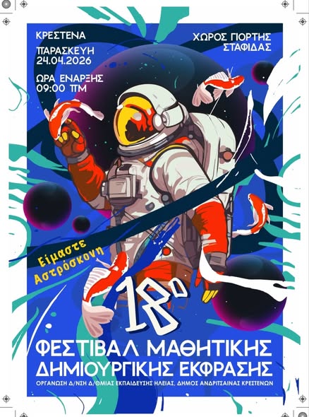 Το site του Φεστιβάλ είναι https://krestena-festival.weebly.com/ και στο https://krestena-festival.weebly.com/upsilonlambdaiotakap… κάτω από την αφίσα υπάρχουν δύο εικόνες, οι οποίες επεξηγούν τη δημιουργία της φετινής αφίσας του 18ου Φεστιβάλ Μαθητικής Δημιουργικής Έκφρασης, την οποία φιλοτέχνησαν ο πρώην μαθητής των σχολείων γραφίστας Γεώργιος Σπήλιος και ο μαθητής της Β Λυκείου Αντώνης Αθανασουλόπουλος.