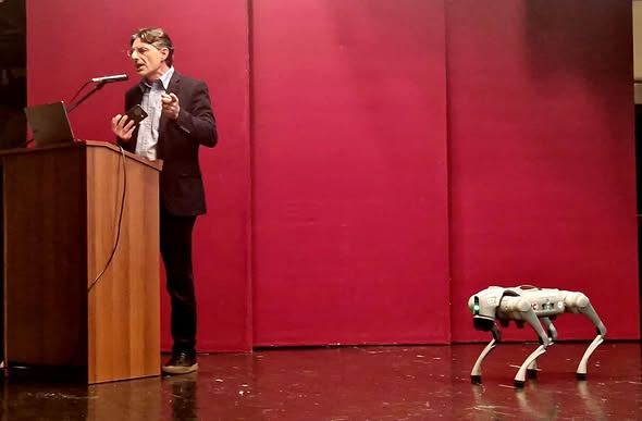 Αίσθηση προκάλεσε η ζωντανή επίδειξη ρομποτικού σκύλου, η οποία κέρδισε το ενδιαφέρον μικρών και μεγάλων και λειτούργησε ως απτό παράδειγμα εφαρμογής της ρομποτικής στην καθημερινή ζωή. Η παρουσία του δεν αποτέλεσε απλώς εντυπωσιακό στοιχείο της εκδήλωσης, αλλά αφετηρία για προβληματισμό και γόνιμο διάλογο γύρω από τα όρια ανάμεσα στη φαντασία και την επιστημονική πραγματικότητα.