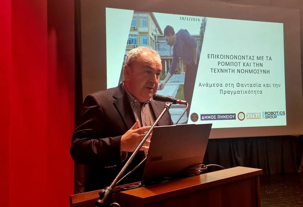 Σε μια εποχή όπου η Τεχνητή Νοημοσύνη και η ρομποτική παύουν να αποτελούν σενάρια επιστημονικής φαντασίας και επηρεάζουν ήδη την εργασία, την εκπαίδευση και την καθημερινότητα των πολιτών, ο Δήμος Πηνειού ανέλαβε μια ουσιαστική πρωτοβουλία ενημέρωσης και διαλόγου με την κοινωνία. Το βράδυ του Σαββάτου, το Κουρβισιάνειο Πολιτιστικό Κέντρο Γαστούνης γέμισε ασφυκτικά στην εκδήλωση με τίτλο «Επικοινωνώντας με τα ρομπότ και την Τεχνητή Νοημοσύνη: ανάμεσα στη φαντασία και την πραγματικότητα», επιβεβαιώνοντας το έντονο ενδιαφέρον του κοινού για τα ζητήματα που διαμορφώνουν το παρόν και το μέλλον.
