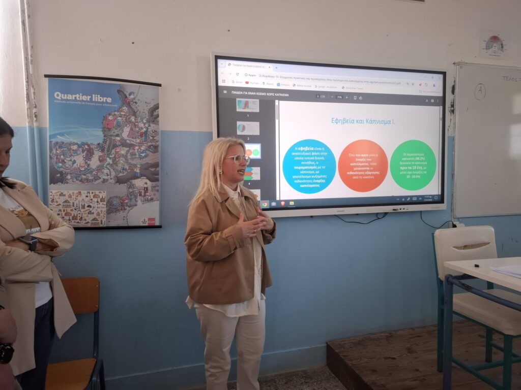 Κατά τη διάρκεια της δράσης, παρουσιάστηκε η πολυβραβευμένη ευρωπαϊκή αντικαπνιστική καμπάνια «Smoke Free Greece» από την κ. Αιμιλία Στασινοπούλου και τη Μαία της Ν.Μ. Κρεστένων, κ. Μαρία Στρουμπάκου, οι οποίες ανέλυσαν τις επιπτώσεις του καπνίσματος και τη σημασία της πρόληψης.