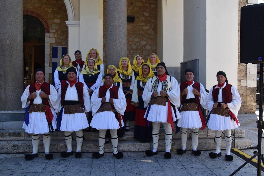 Το πρόγραμμα πλαισιώθηκε με μια εντυπωσιακή παρουσίαση παραδοσιακών στολών από το Διοικητικό Συμβούλιο του Συλλόγου «Χαράλαμπος Βιλαέτης», και ολοκληρώθηκε με παραδοσιακούς χορούς από τα μέλη του Εθιμοτυπικού Συλλόγου Λεχαινών.