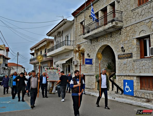 Αρχικά τελέστηκε Θεία Λειτουργία στον Ι.Ν. Υπαπαντής Κυρίου και εν συνεχεία έγινε λιτανεία της ιερής εικόνας στους κεντρικούς δρόμους της πόλης, με τη συνοδεία πιστών της περιοχής ενώ όσοι για διάφορους λόγους δεν μπόρεσαν να ακολουθήσουν ανέμεναν την επιστροφή της εικόνας στην εκκλησία.