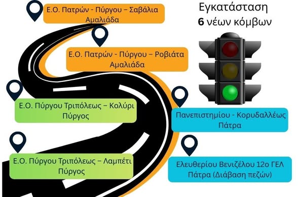 Με στόχο την ενίσχυση της οδικής ασφάλειας και τη βελτίωση της ροής της κυκλοφορίας, η Περιφέρεια Δυτικής Ελλάδας προχωρά στην εγκατάσταση νέων κόμβων φωτεινής σηματοδότησης σε κομβικά σημεία των ΠΕ Ηλείας και Αχαΐας, με χρηματοδότηση 630.000 € από τους Κεντρικούς Αυτοτελείς Πόρους (ΚΑΠ).
