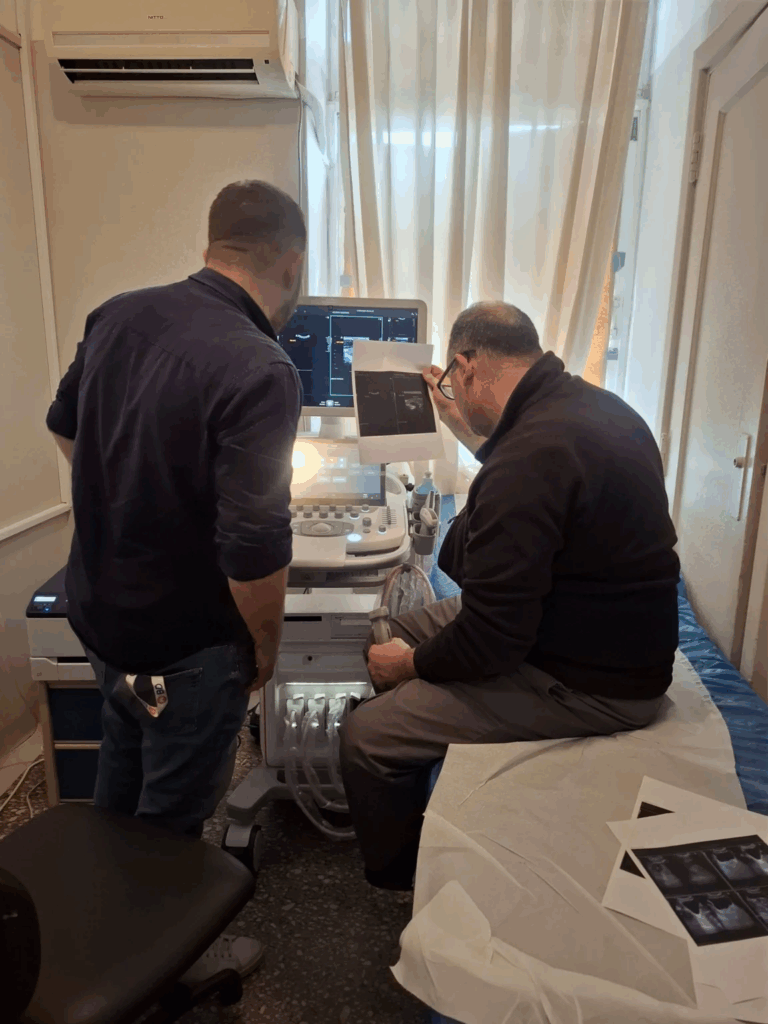 Στις φωτογραφίες αποτυπώνονται στιγμιότυπα από την εκπαίδευση του Ιατρικού και Νοσηλευτικού μας Προσωπικού στη λειτουργία του νέου υπερηχογράφου.