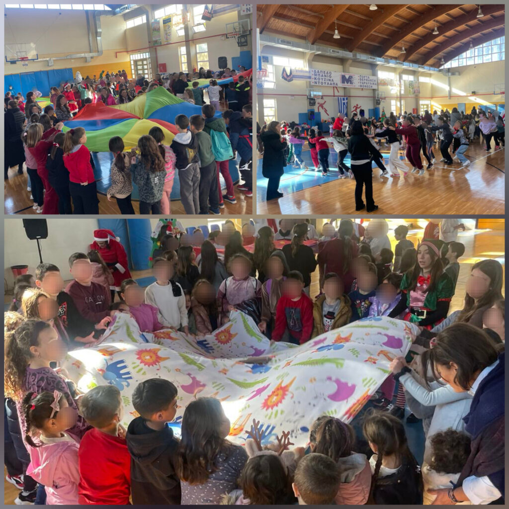 Παράλληλα, συμμετείχαν σε Χριστουγεννιάτικες μελωδίες και χορογραφίες από τις χαρούμενες Αγιοβασιλίτσες που γέμισαν το Κλειστό Γυμναστήριο με κέφι, ρυθμό και γιορτινή διάθεση.