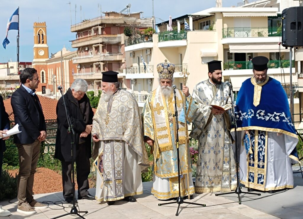 Το πρωί της Τετάρτης, 25 Μαρτίου 2026, τελέστηκε η καθιερωμένη δοξολογία στον Ιερό Ναό Αγίου Νικολάου, χοροστατούντος του Σεβασμιότατου Μητροπολίτη Ηλείας και Ωλένης κ.κ. Αθανασίου. Στη συνέχεια, πραγματοποιήθηκε επιμνημόσυνη δέηση και κατάθεση στεφάνων στο Ηρώο της Κεντρικής Πλατείας, παρουσία εκπροσώπων των αρχών και πλήθους κόσμου.