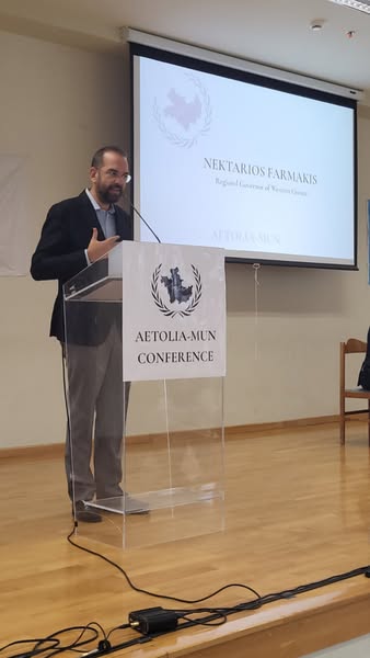 Με χαρά βρέθηκα σήμερα στο Καλλιτεχνικό Σχολείο Μεσολογγίου, στη συνάντηση νέων που προσομοιάζει μία συνέλευση των Ηνωμένων Εθνών, με μαθητές σε ρόλο διπλωματών, την οποία επιμελήθηκε η Οργανωτική Επιτροπή του AETOLIA-MUN.
