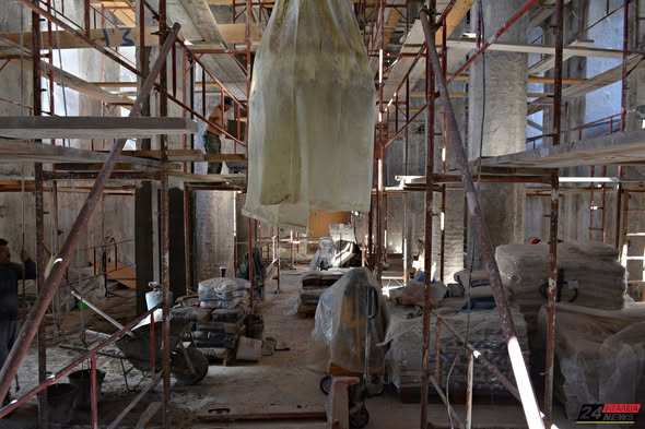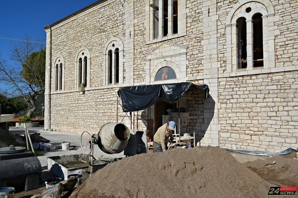 Ο αρμόδιος εργολάβος εργάζεται μαζί με το προσωπικό του, στην αποκατάσταση των φθορών ενώ στον Ι.Ν εργάζεται και δεύτερος εργολήπτης ο οποίος έχει αναλάβει την τοποθέτηση των νέων υαλοπινάκων στο κτήριο.