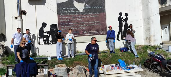 Με επιτυχία ολοκληρώθηκε η εικαστική δράση γκράφιτι που διοργάνωσε το Γραφείο μας την Κυριακή 16 Νοεμβρίου στην πλατεία «Μίκη Θεοδωράκη». Η ομάδα γκράφιτι φιλοτέχνησε τον τοίχο όπου βρίσκεται η αφίσα του μεγάλου μουσικοσυνθέτη, καθώς και τα καφάο της περιοχής αλλά και της κεντρικής πλατείας, τα οποία είχαν επιβαρυνθεί με συνθήματα.