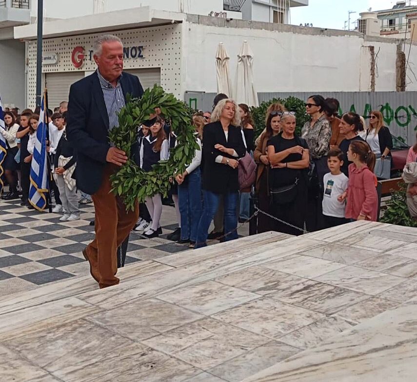 Ακολούθησε η κατάθεση στεφάνων από εκπροσώπους των δύο σχολείων, ενώ στη συνέχεια κατατέθηκαν στεφάνια από το σύνολο των εκπαιδευτικών φορέων της πόλης.