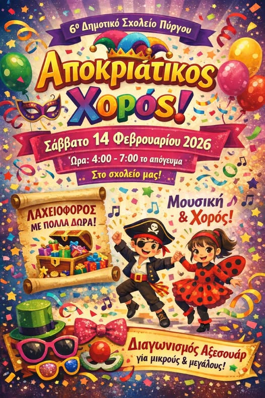 Μετά το τσίκνισμα της Πέμπτης έρχεται…αποκριάτικος χορός για το 6ο Δημοτικο Σχολείο Πύργου!