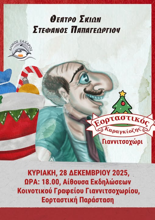 Ο Δήμος Ζαχάρως σας προσκαλεί σε μια μοναδική εορταστική παράσταση γεμάτη γέλιο, παράδοση και χριστουγεννιάτικη μαγεία!