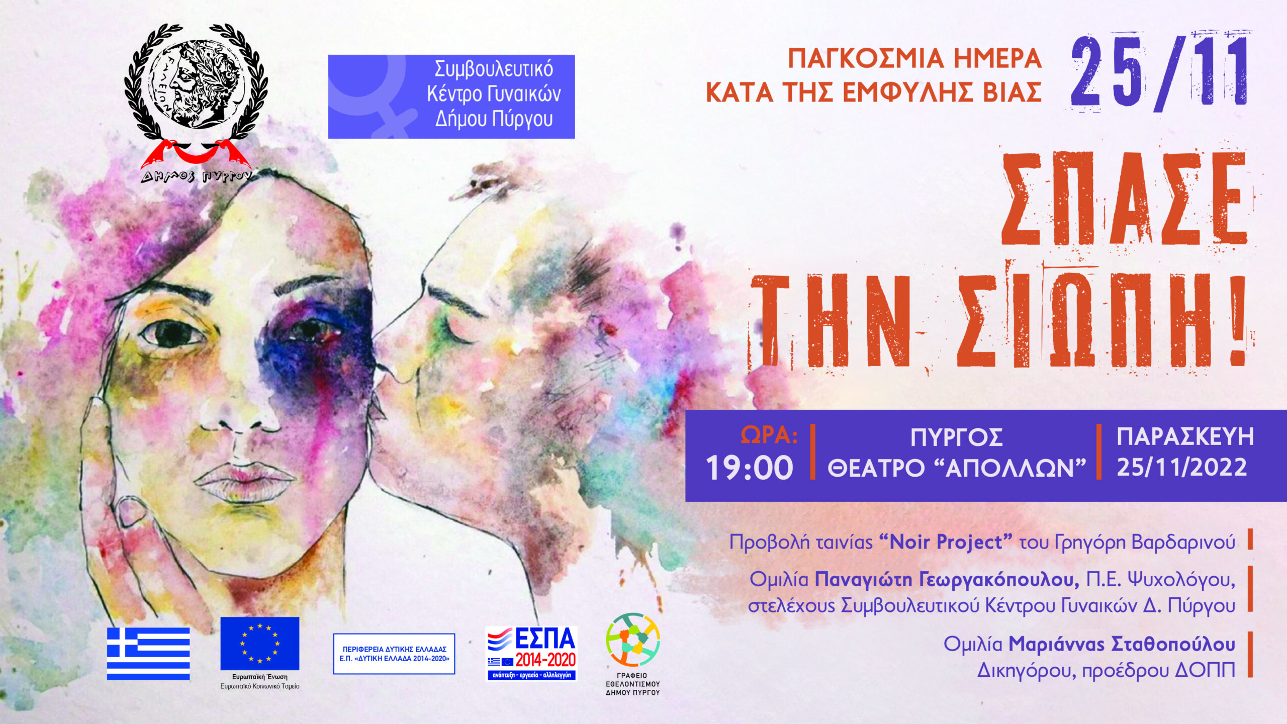Κέντρο Γυναικών Δήμου Πύργου, διοργανώνουν εκδήλωση με τίτλο «Σπάσε τη